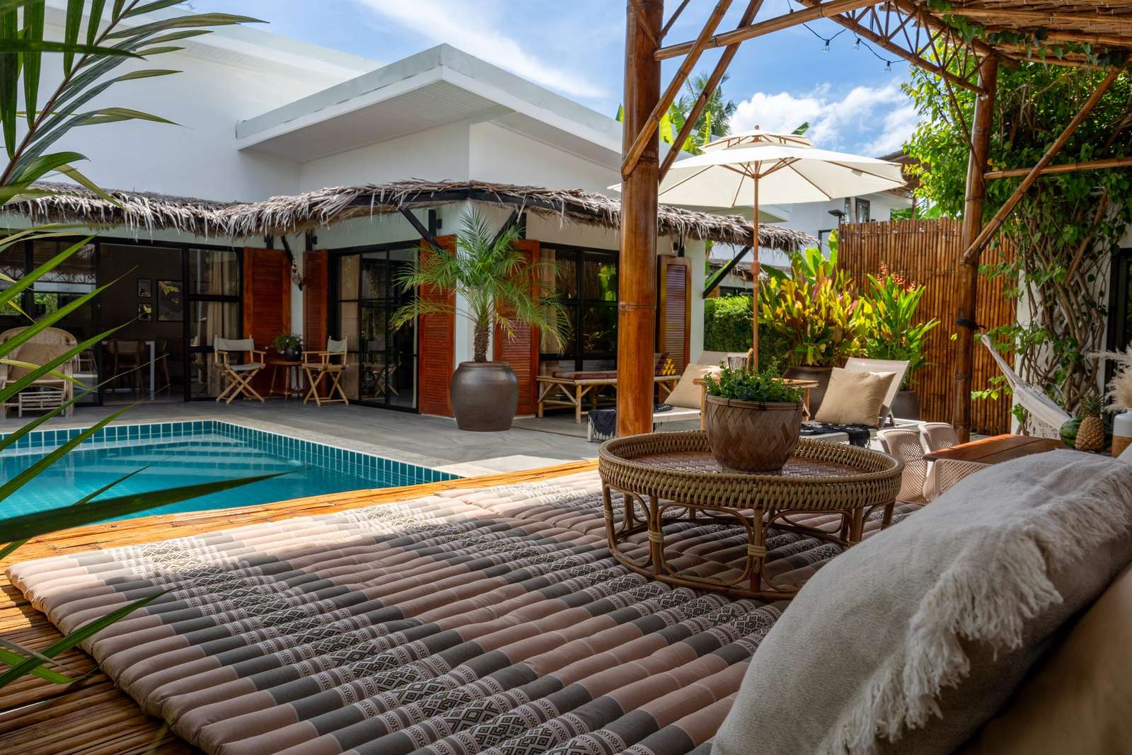 With its cozy and stylish design, this 4 bedroom pool villa can accommodate up to 8 people and is just a 5 minute walk from the stunning Klong Khong beach.