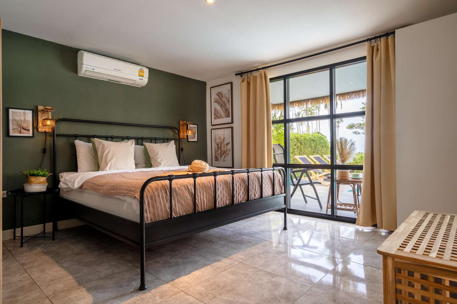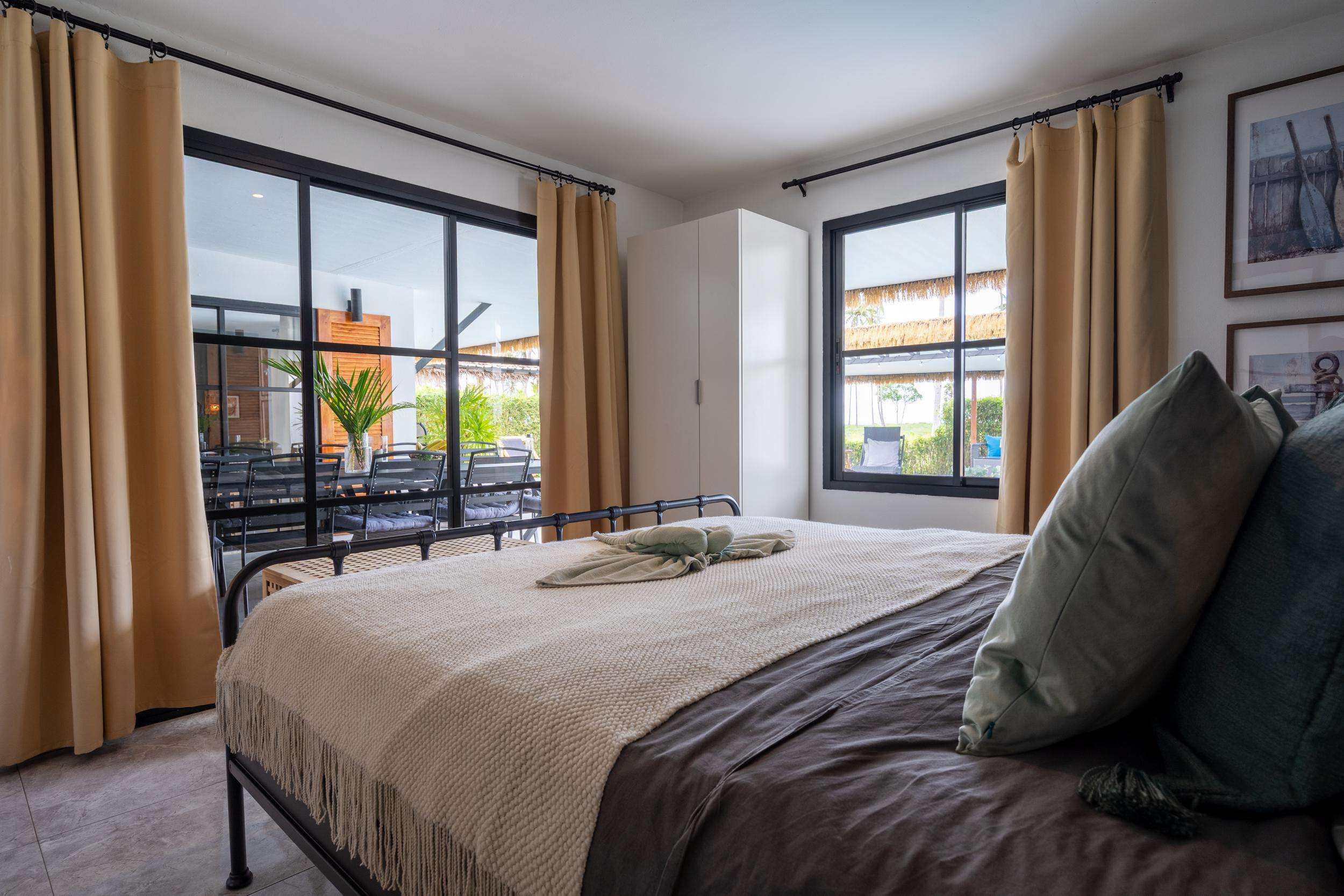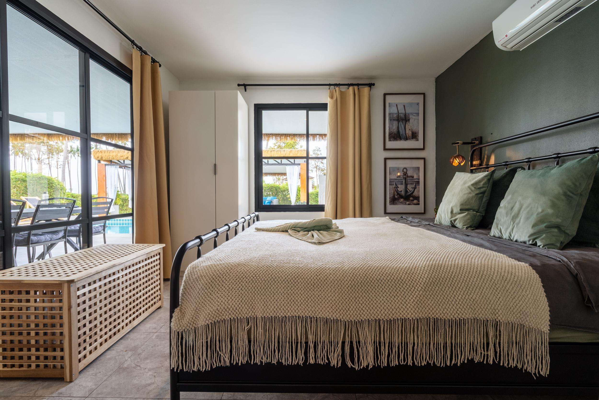 Master bedroom (King, 180cm): 15sqm air conditioned, direct pool access