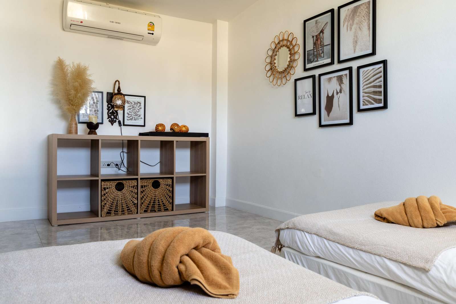 All 4 bedrooms are and air-conditioned with plenty of cupboard space. Comfortable beds in all bedrooms.